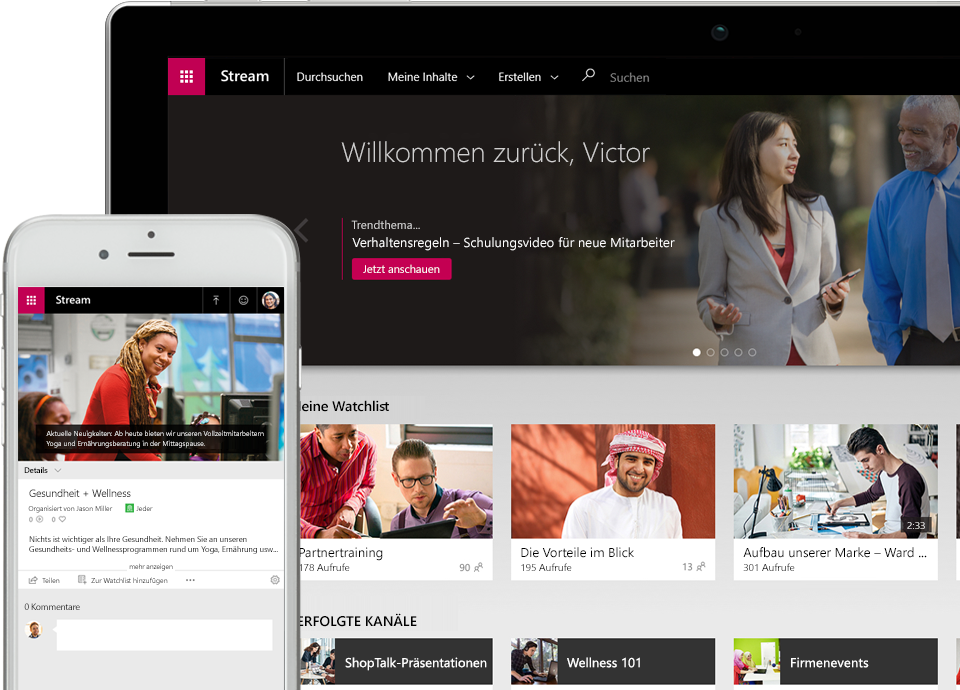 Mit Microsoft Stream, SharePoint Online und unseren Erweiterungen ergänzen wir ihre Office 365 Subscription um ein E-Learningportal.